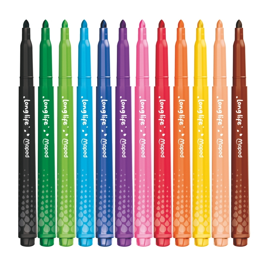 Filctoll készlet, 3,7 mm, kimosható, MAPED „Color`Peps Long Life 2”, 12 különböző szín