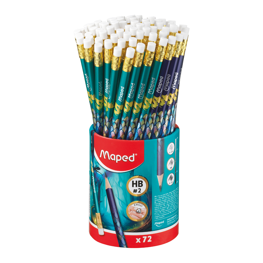 Grafitceruza radírral, ceruzatartó, HB, háromszögletű, MAPED „Dragon sárkány”, 72 db