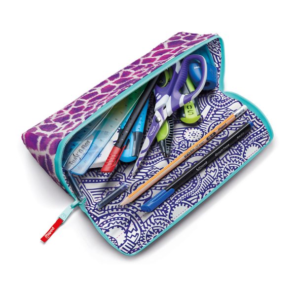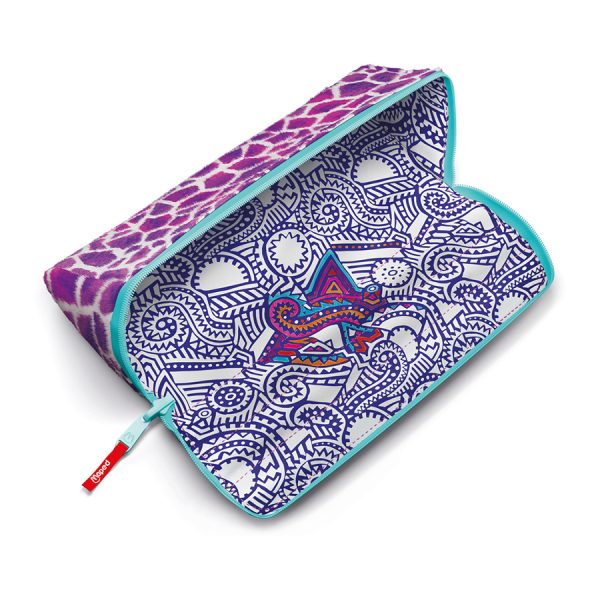 Tolltartó, háromszög alakú, kifordítható, cipzáras, MAPED Open XXL Effect, állatmintás